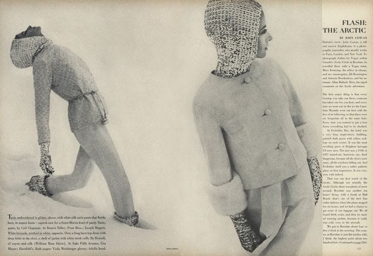 I’m verrryy into ski fashion and aesthetics, especially of the 70s, so much so that one of the fictional worlds I have in mind for a story is revolved around its wardrobe. So, please enjoy these old ski editorial layouts.